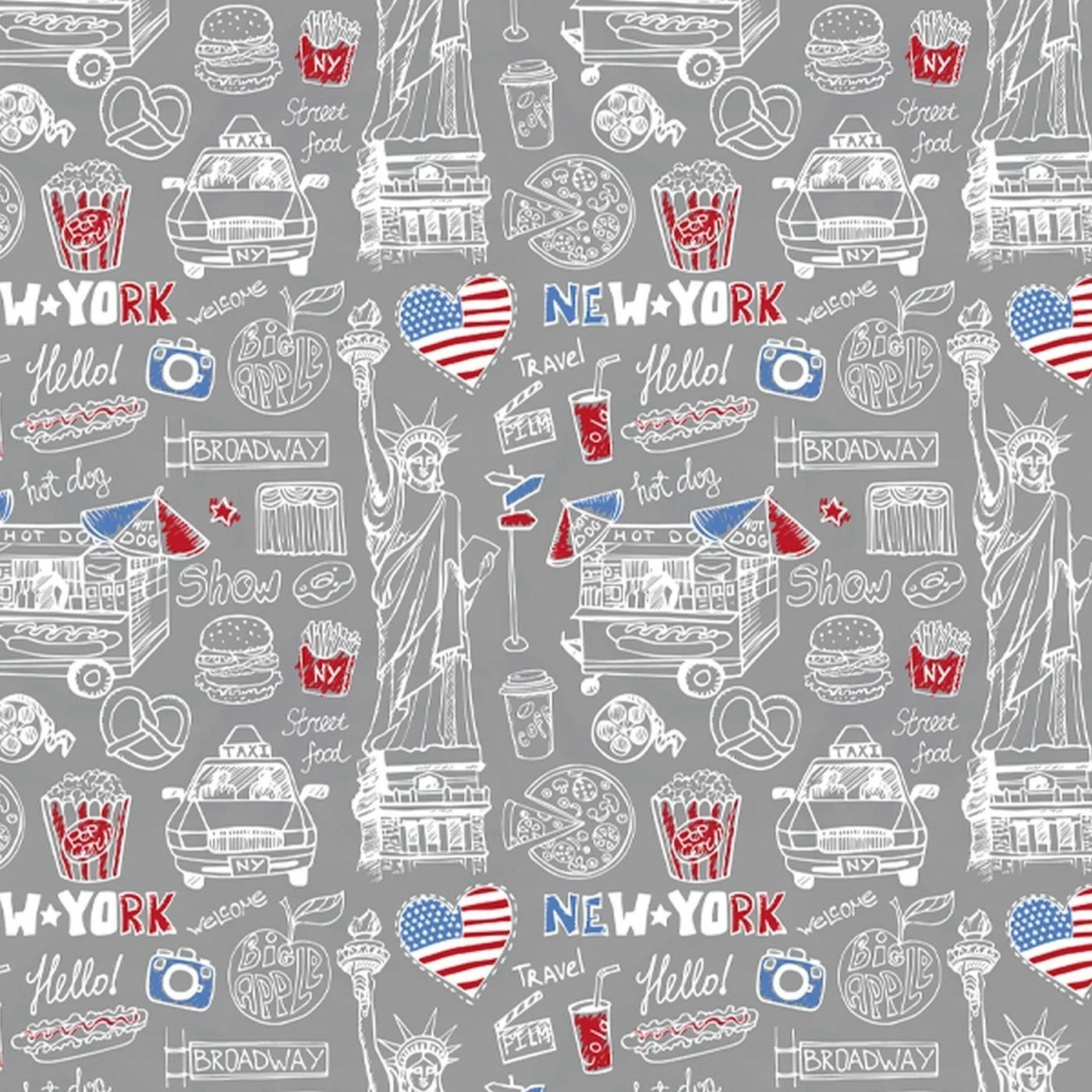 Baumwolle, Fernweh, New York USA, Grau, Hochwertige Popeline