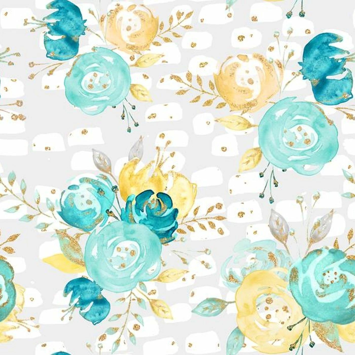 Bio-Jersey, Flowers On Grey, Gold Mint Collection