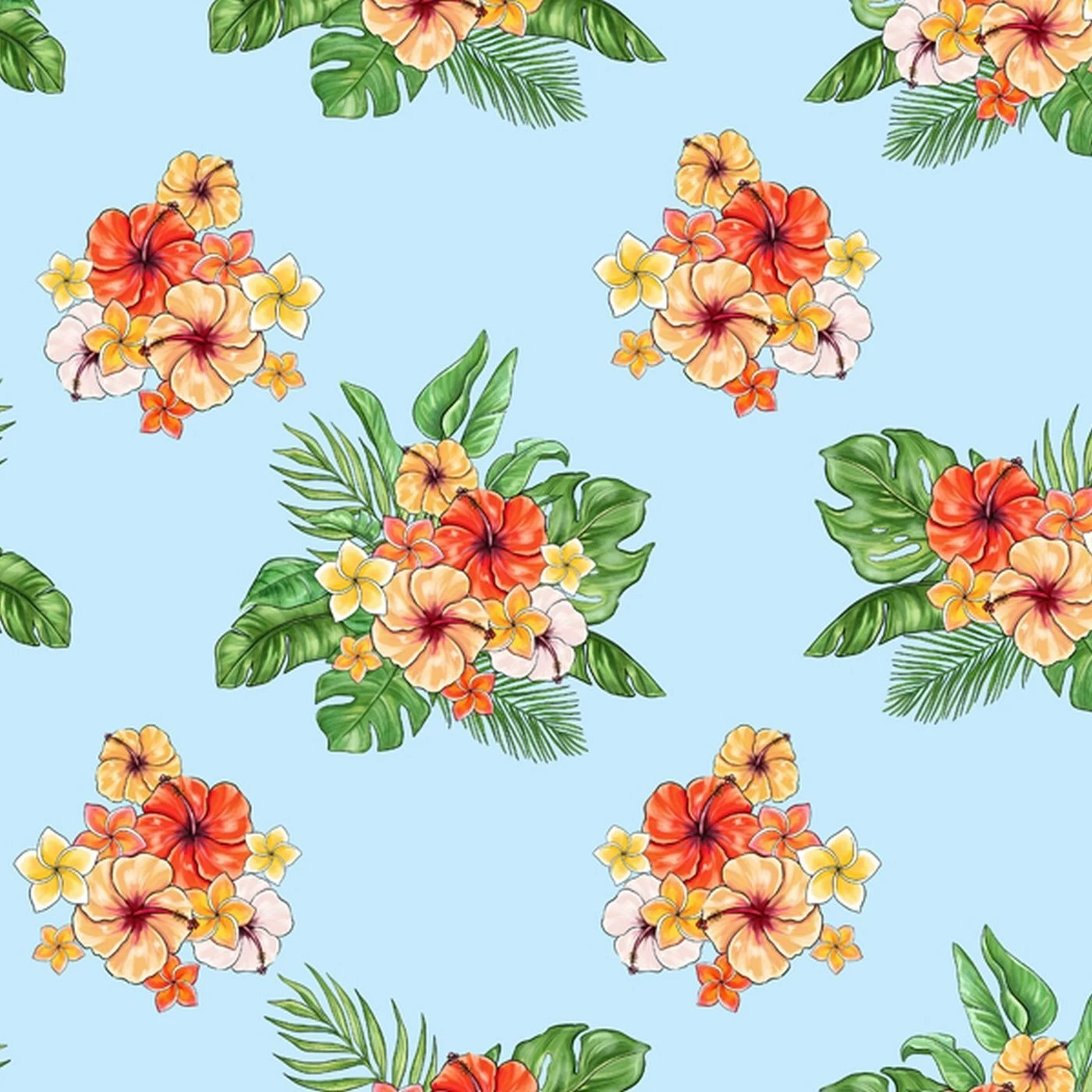 Bio-Jersey,Im Regenwald, Blumen, Türkis