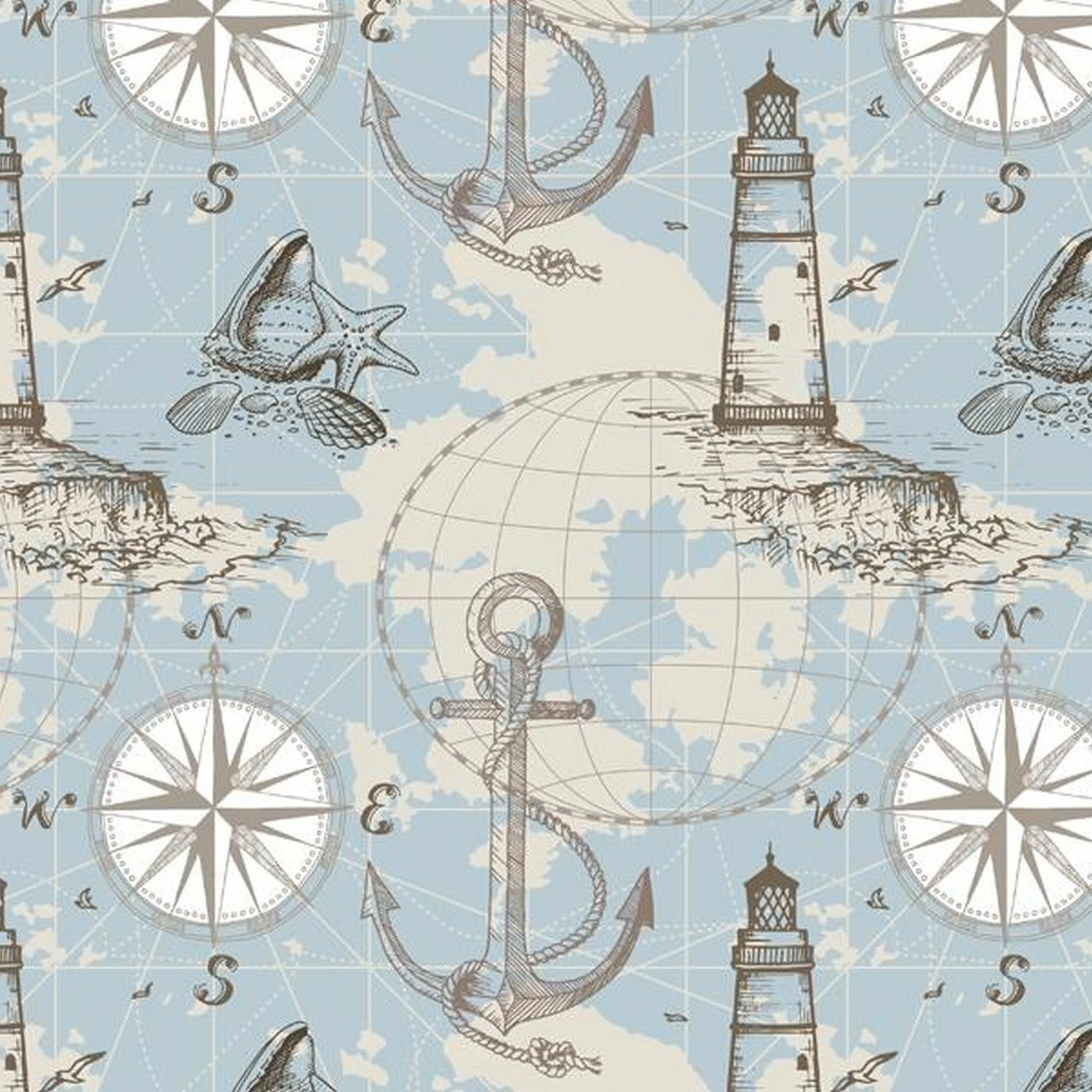 Bio-Jersey, Vintage Sea, Leuchtturm Anker, Blau
