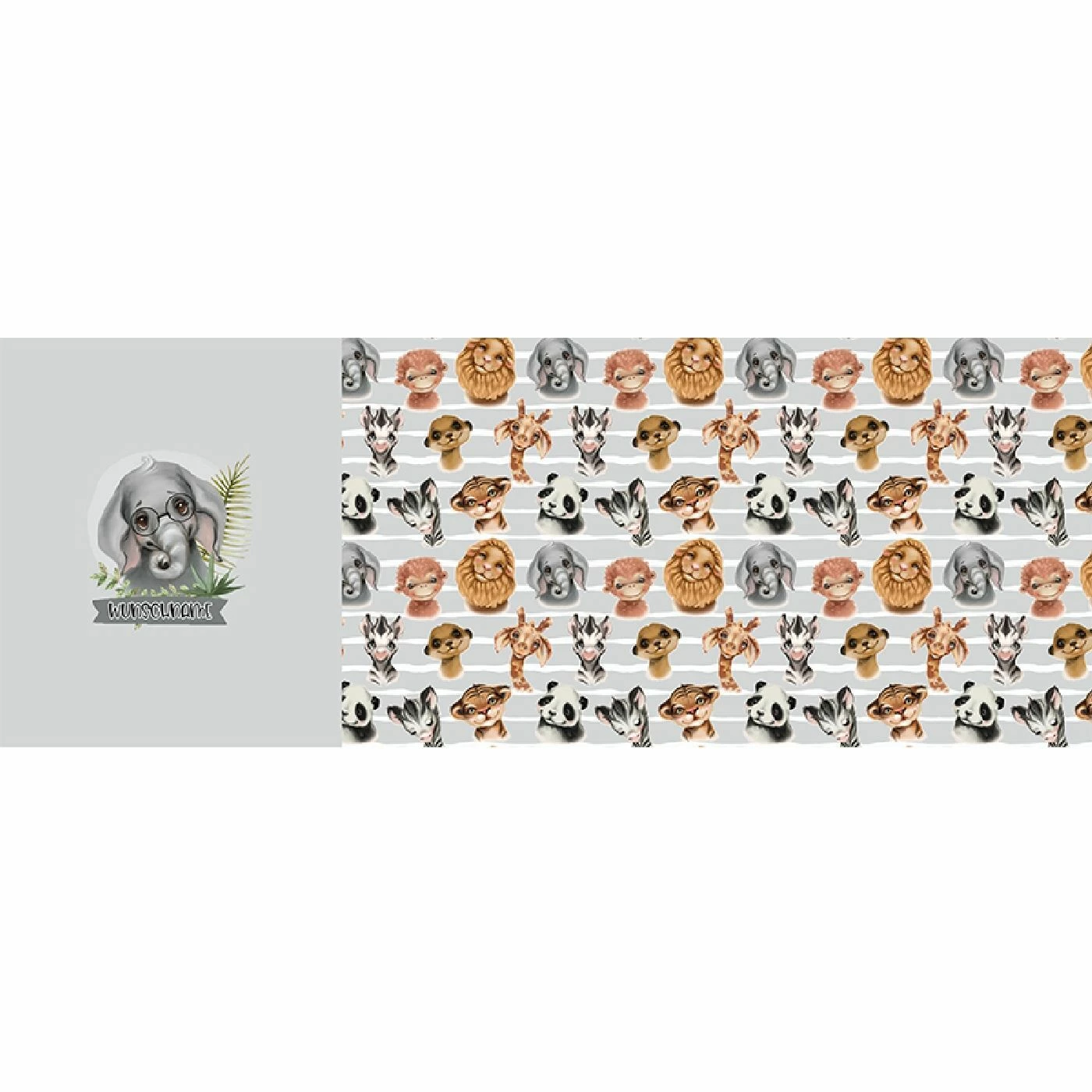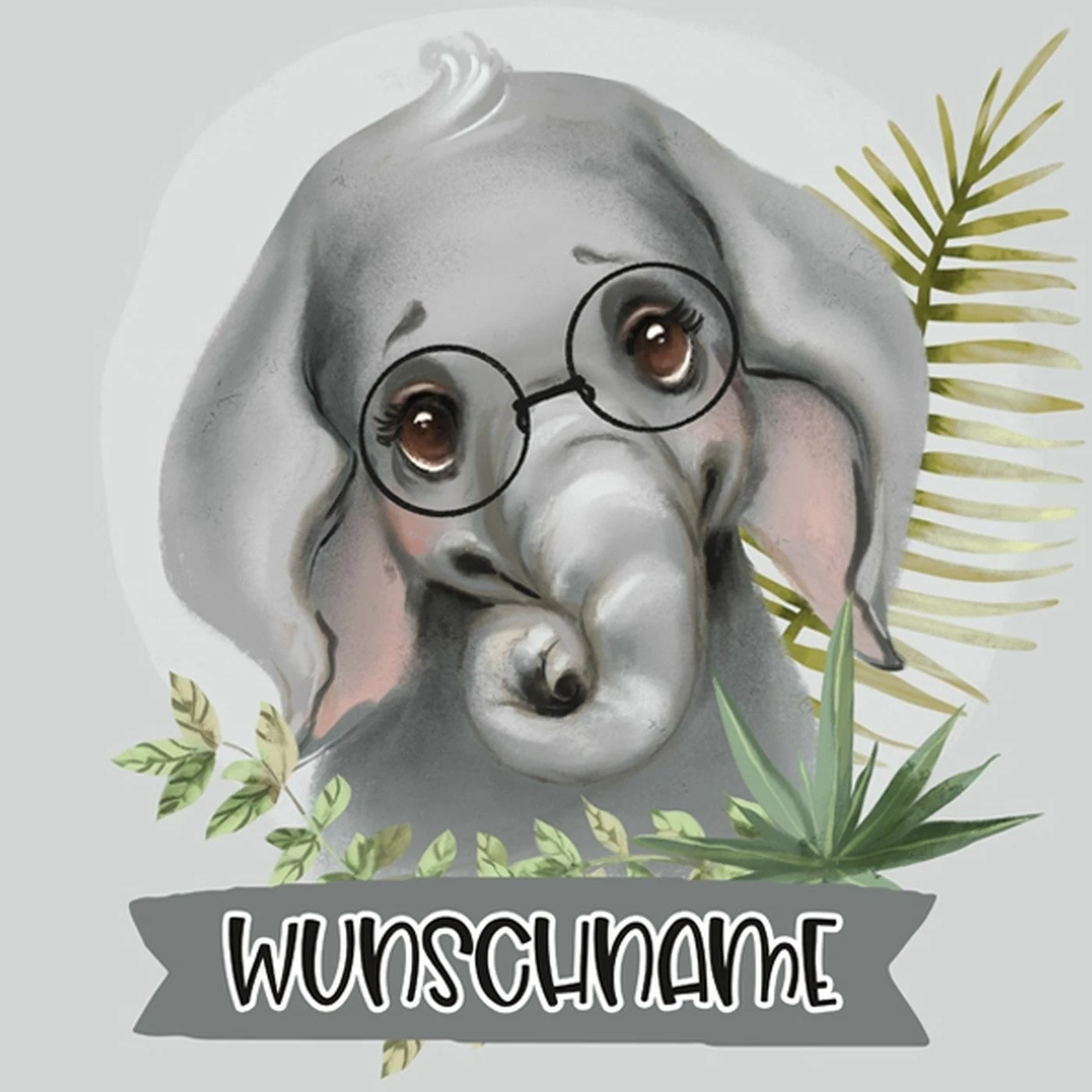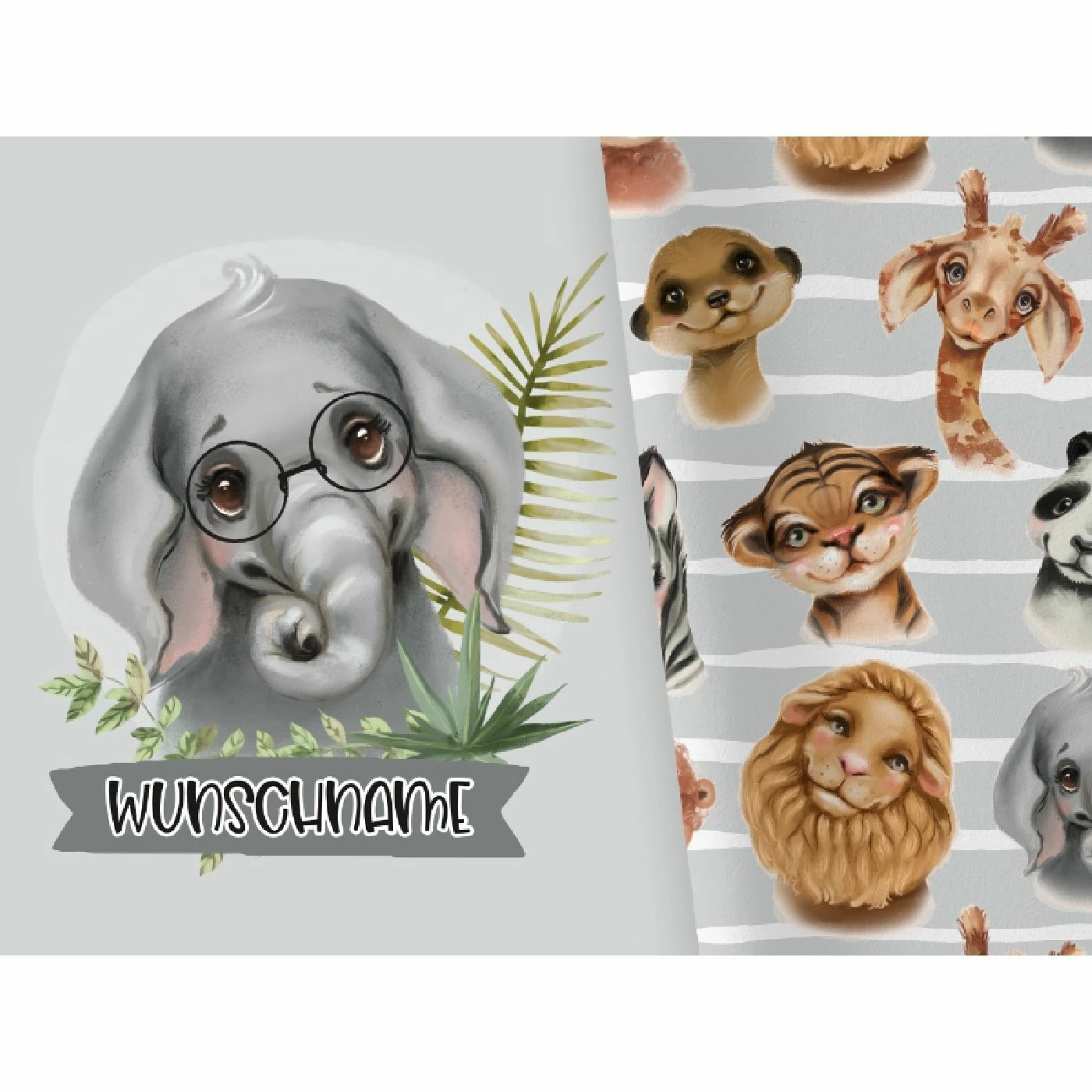 Bio-Jersey WUNSCHNAME Panel + Kombistoff Smiling Friends, Elefant Grau, 2 In 1
