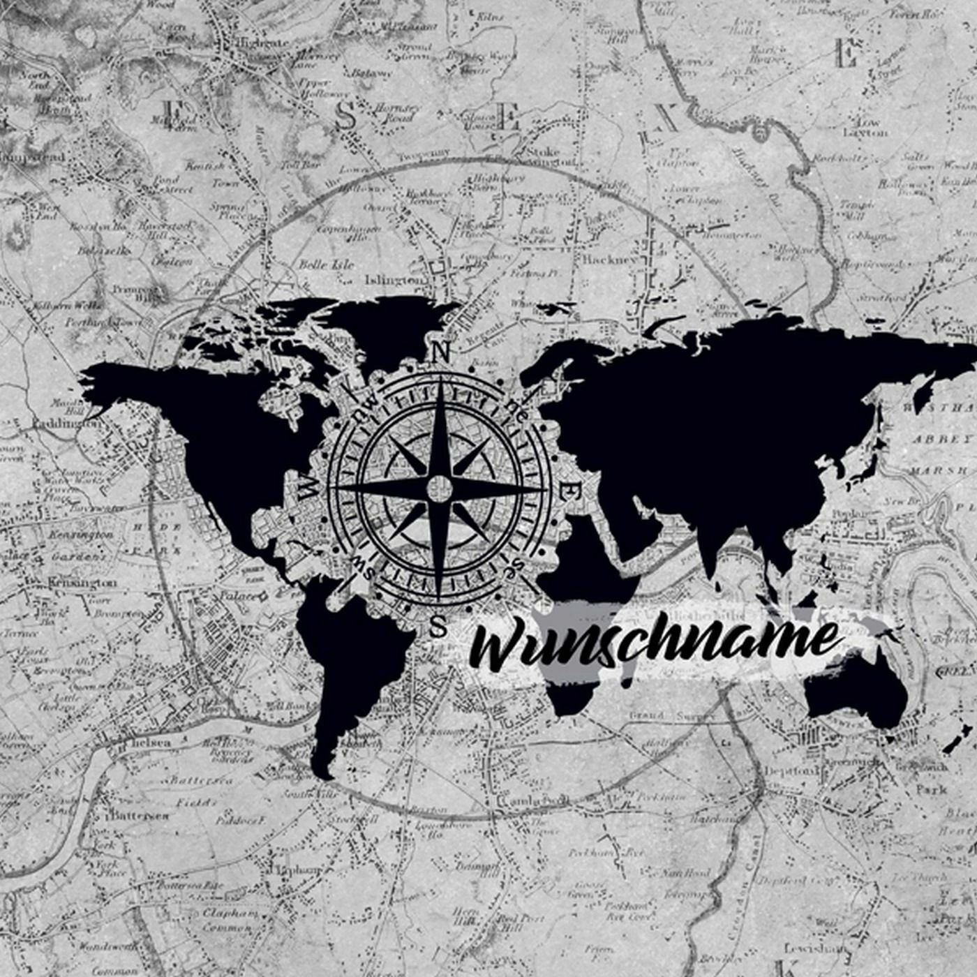 Bio-Jersey WUNSCHNAME XL Panel + Kombistoff Discover The World, Kompass Schwarz, 2 In 1