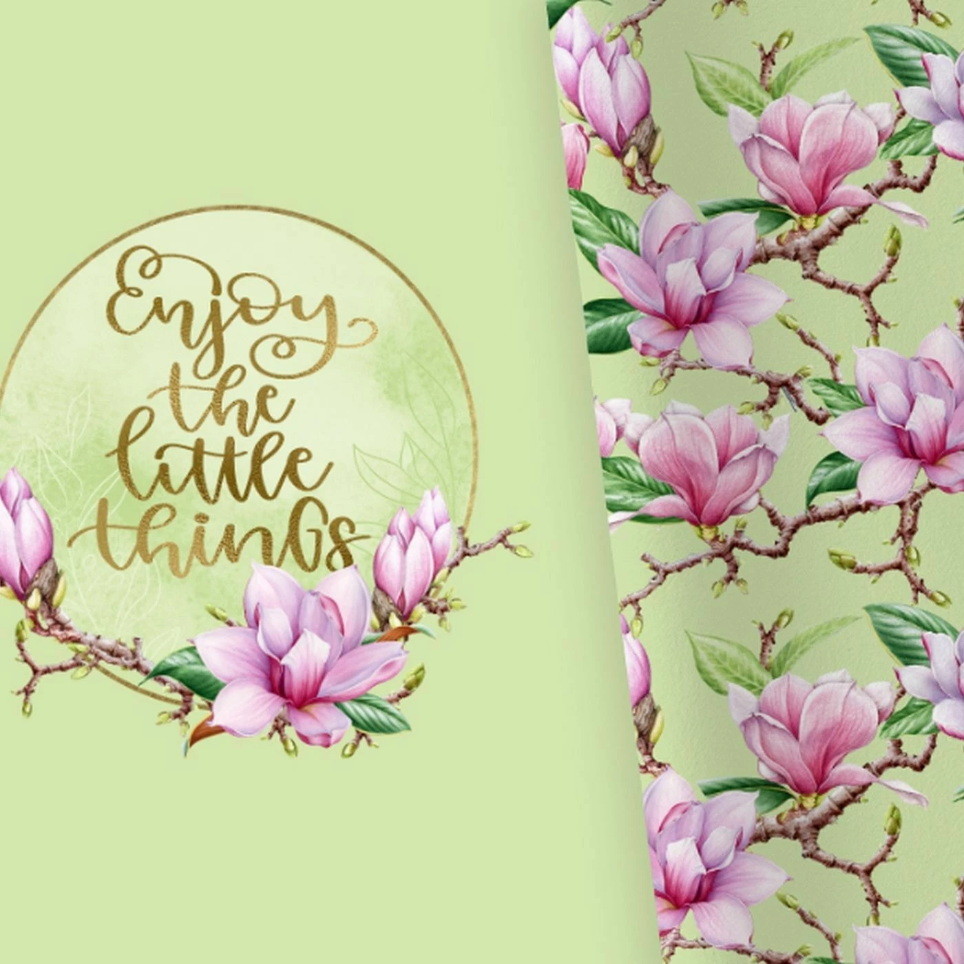 Bio-Jersey XL Panel + Kombistoff Magnolia Love, Enjoy The… Grün, 2 In 1