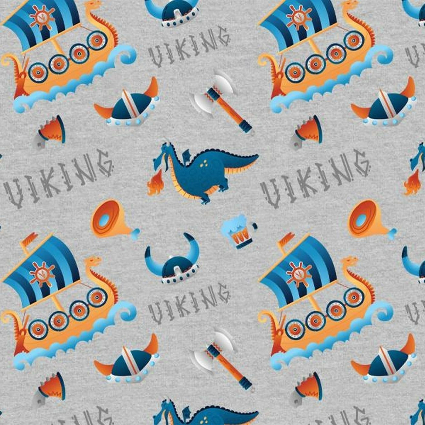 Bio-Sommersweat, VIKING Auf Grau Meliert, Wikinger & Drachen