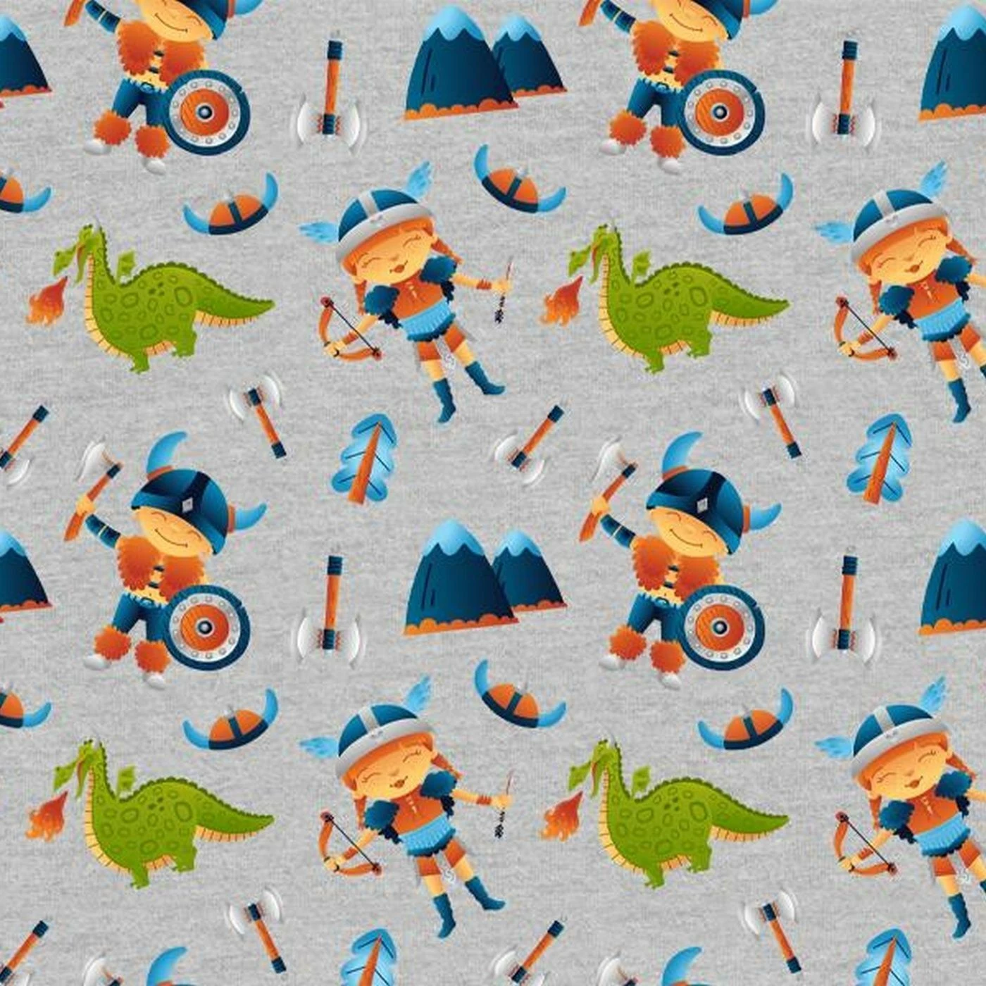 Bio-Sommersweat, WIKINGER-KIND, Auf Grau Meliert, Wikinger & Drachen