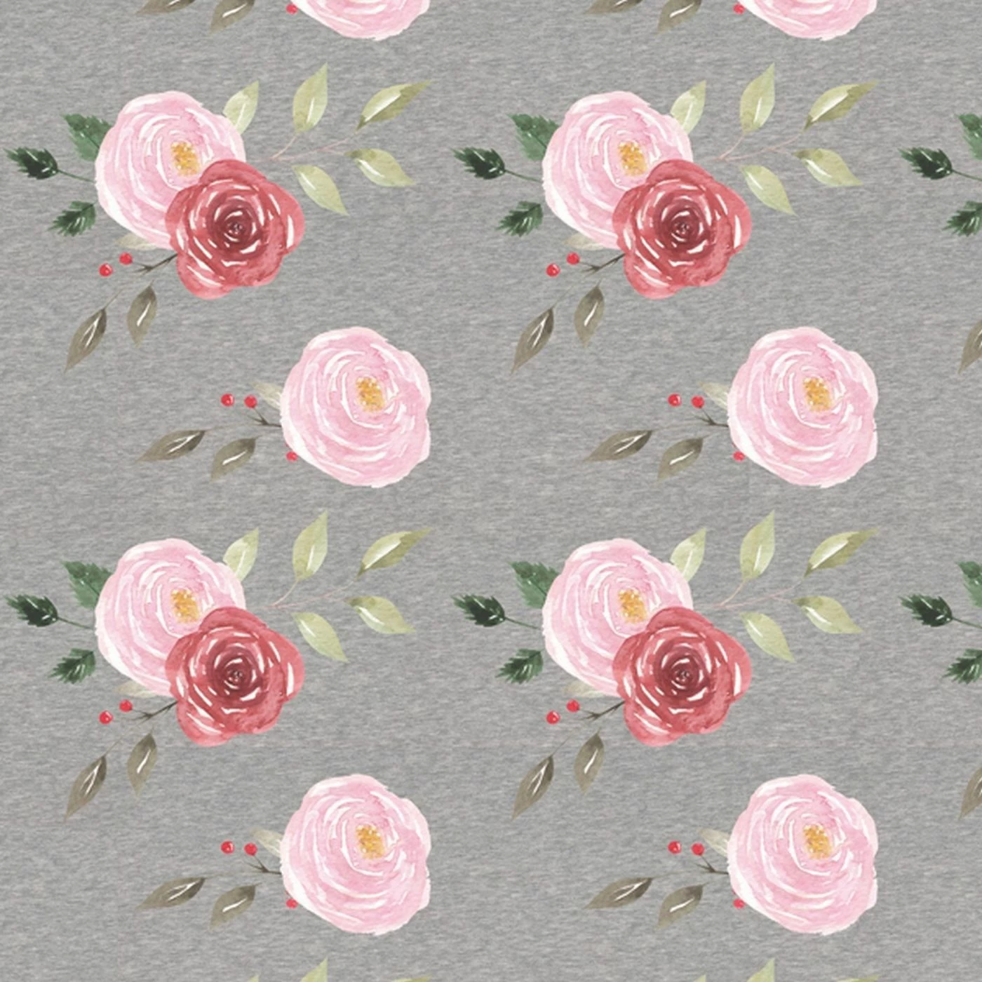 Bio-Sommersweat, Wild Roses II Auf Grau Meliert