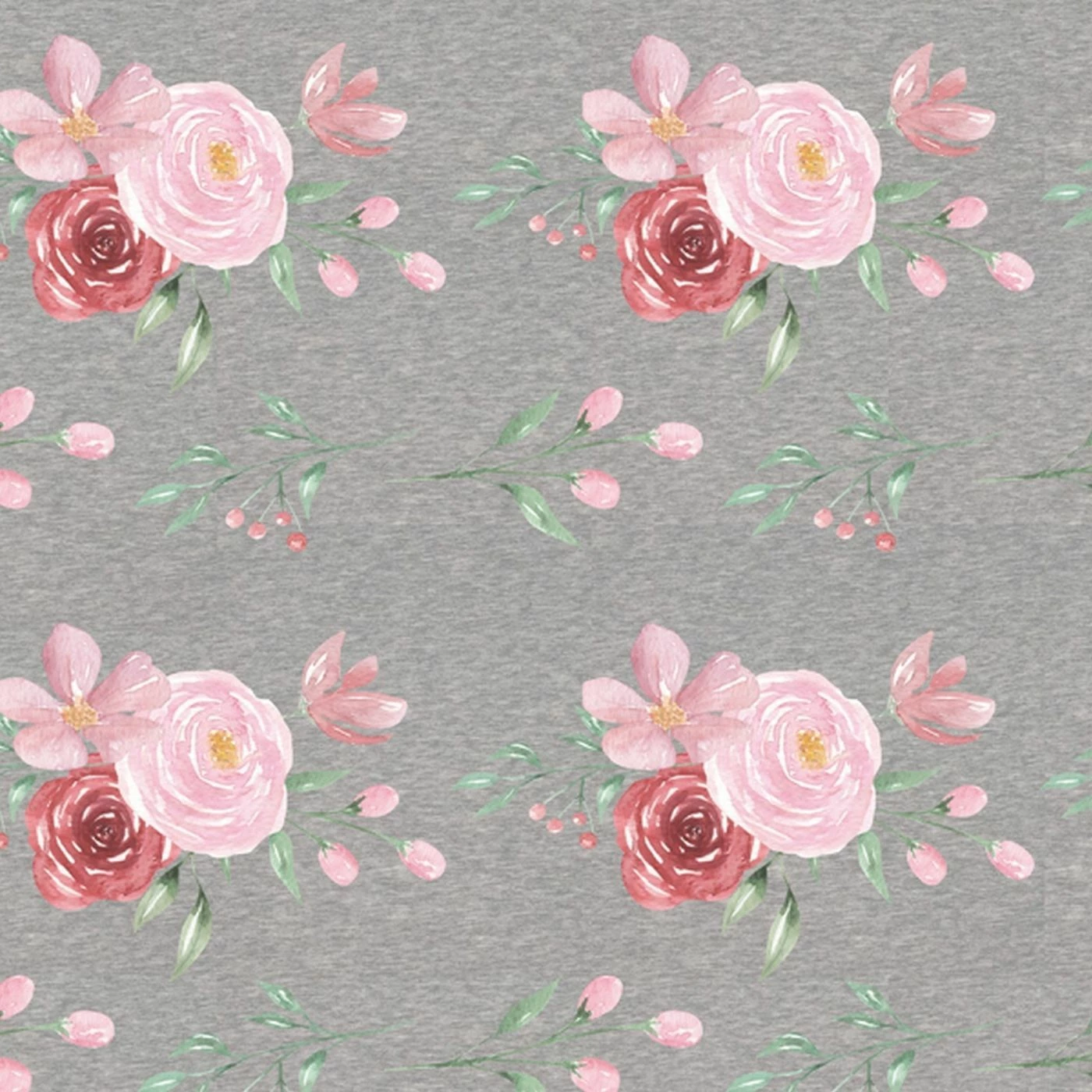Bio-Sommersweat, Wild Roses With Flower Buds Auf Grau Meliert