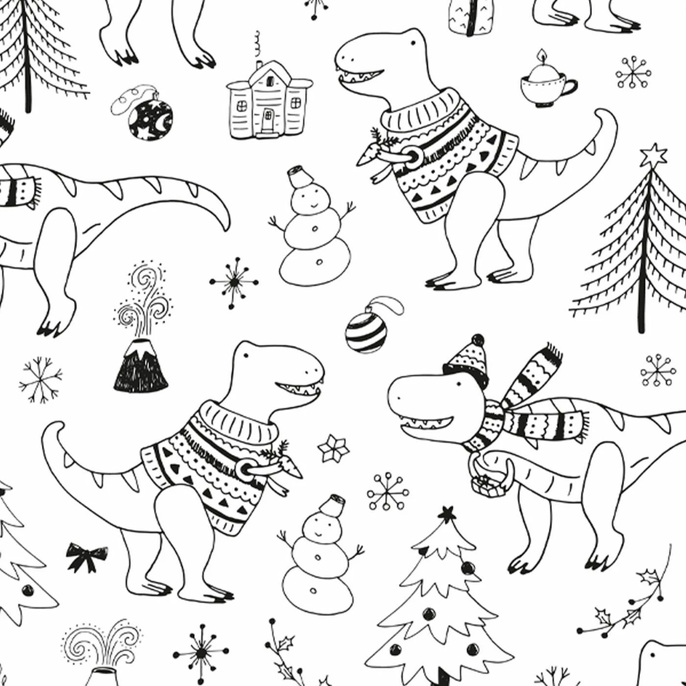 Dino-Weihnachten Ausmalstoff Auf Hochwertiger, Super Weicher, ägyptischer Baumwolle, Weihnachten