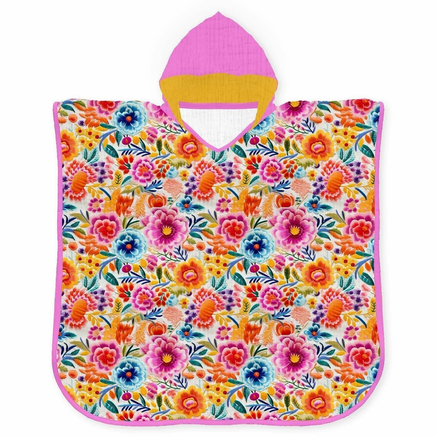 Musselin-Poncho, Blumen Strickoptik (Nähset)