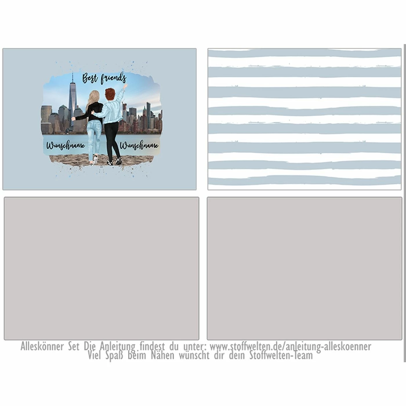 Dein Alleskönner-Taschen-Nähset bedrucken wir für dich mit deinem Wunschnamen. Bitte beachte, dass wir bei sehr langen Namen die Schrift etwas kleiner wählen müssen, als im Beispiel angegeben. Wir passen (bei langen Namen) deinen Wunschnamen der Grafik optisch an.ACHTUNG: Du benötigst für eine Alleskönner-Tasche ca. 30cm Endlos.Reißverschluss sowie einen Zipper. Beides findest du bei uns im Shop.