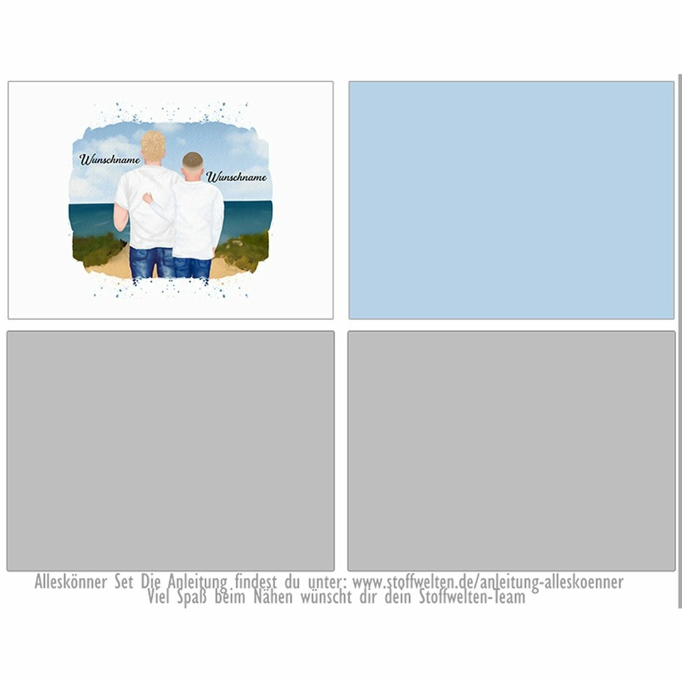 Dein Alleskönner-Taschen-Nähset bedrucken wir für dich mit deinem Wunschnamen. Bitte beachte, dass wir bei sehr langen Namen die Schrift etwas kleiner wählen müssen, als im Beispiel angegeben. Wir passen (bei langen Namen) deinen Wunschnamen der Grafik optisch an.ACHTUNG: Du benötigst für eine Alleskönner-Tasche ca. 30cm Endlos.Reißverschluss sowie einen Zipper. Beides findest du bei uns im Shop.