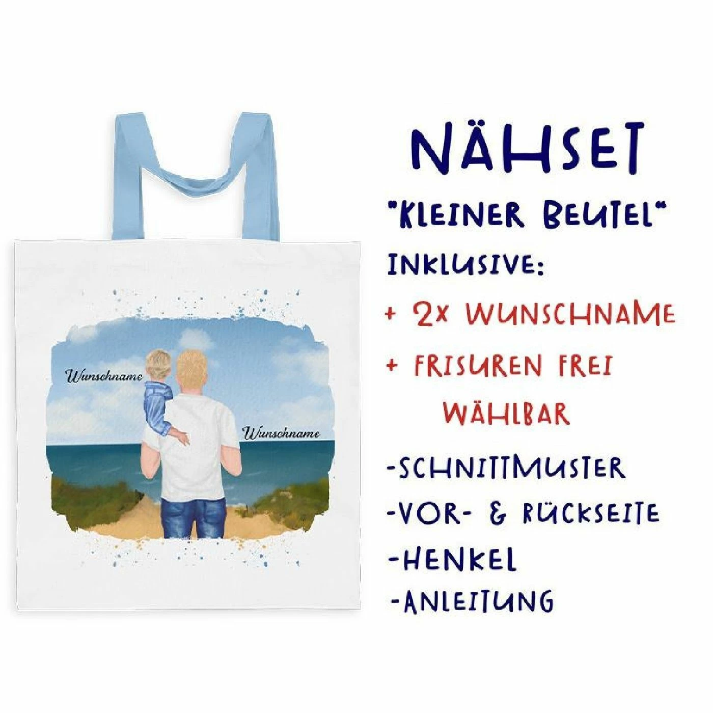 Nähset Tasche, Vater & Kind (Kleinkind) Am Strand , Wunschnamen + Wunschfrisuren, Canvas
