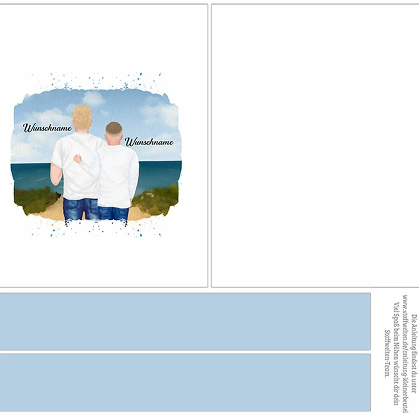 Nähset Tasche, Vater & Sohn (Tennager) Am Strand , Wunschnamen + Wunschfrisuren, Canvas
