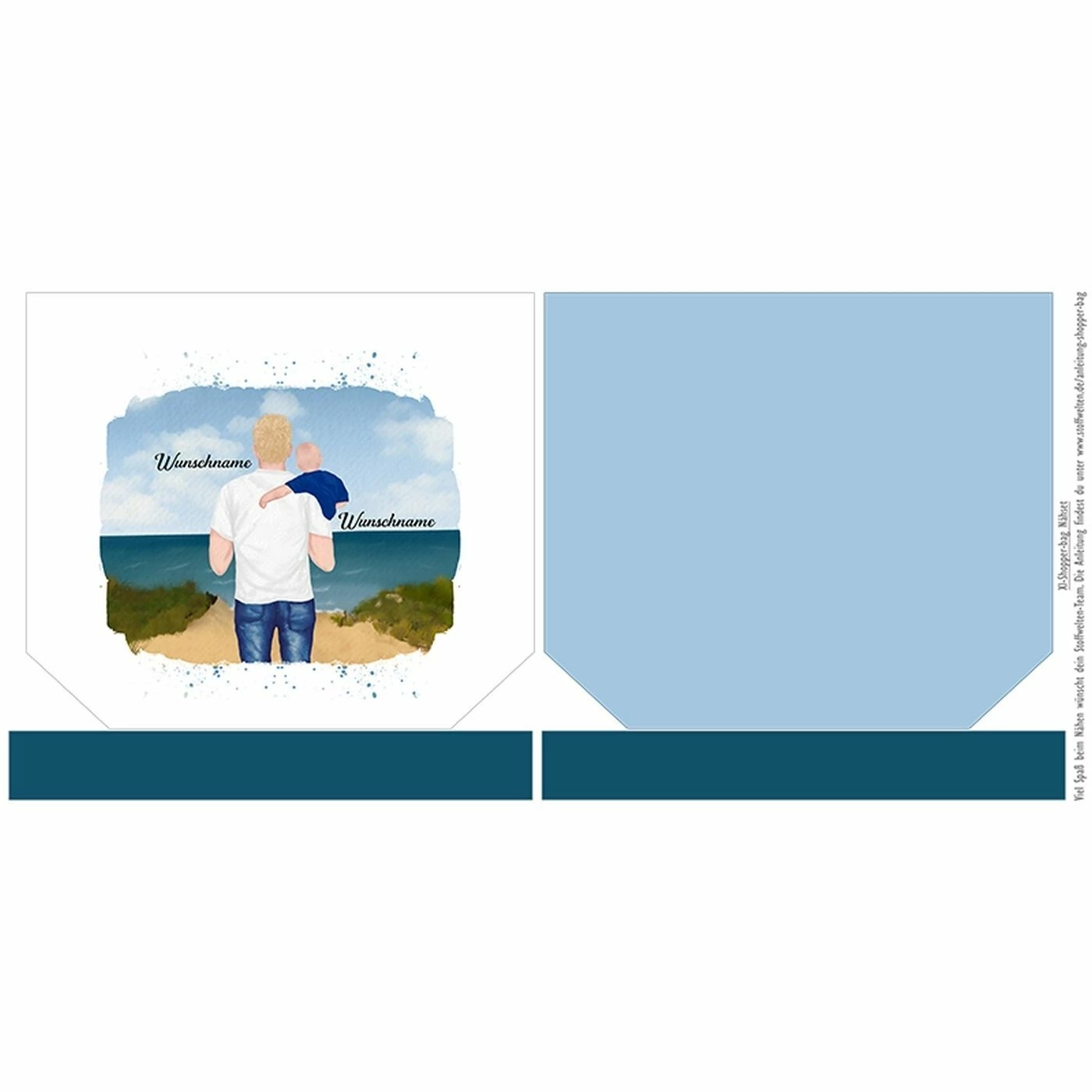 Nähset XL Shopper-Bag, Vater & Kind (Baby) Am Strand , Wunschnamen + Wunschfrisuren