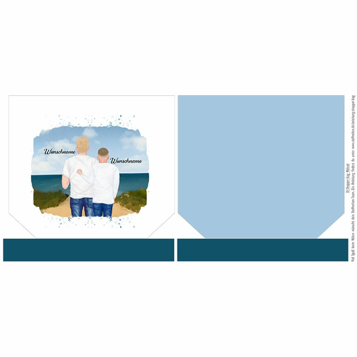 Nähset XL Shopper-Bag, Vater & Sohn (Tennager) Am Strand , Wunschnamen + Wunschfrisuren, Inkl. Schnittmuster