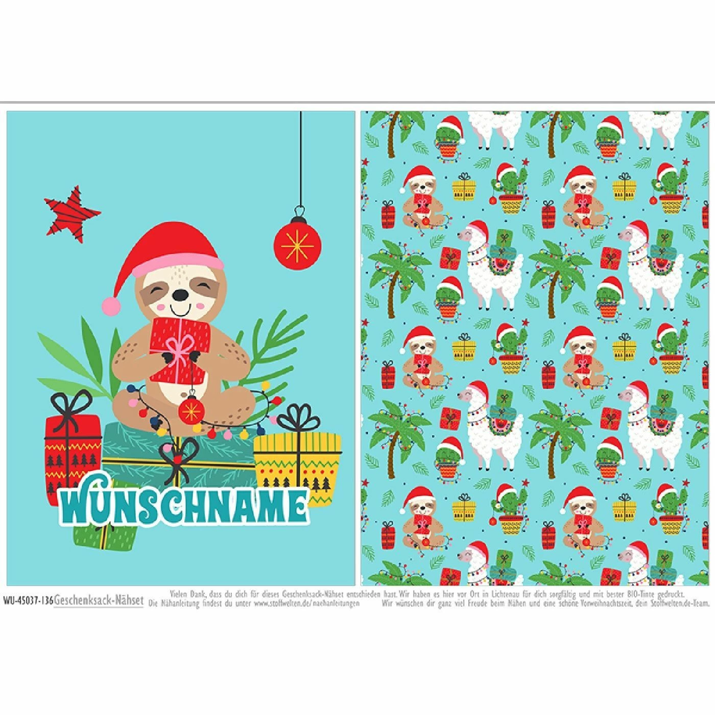 Nähset XXL Riesen WUNSCHNAME Geschenke-Sack Faultier Blau, Canvas