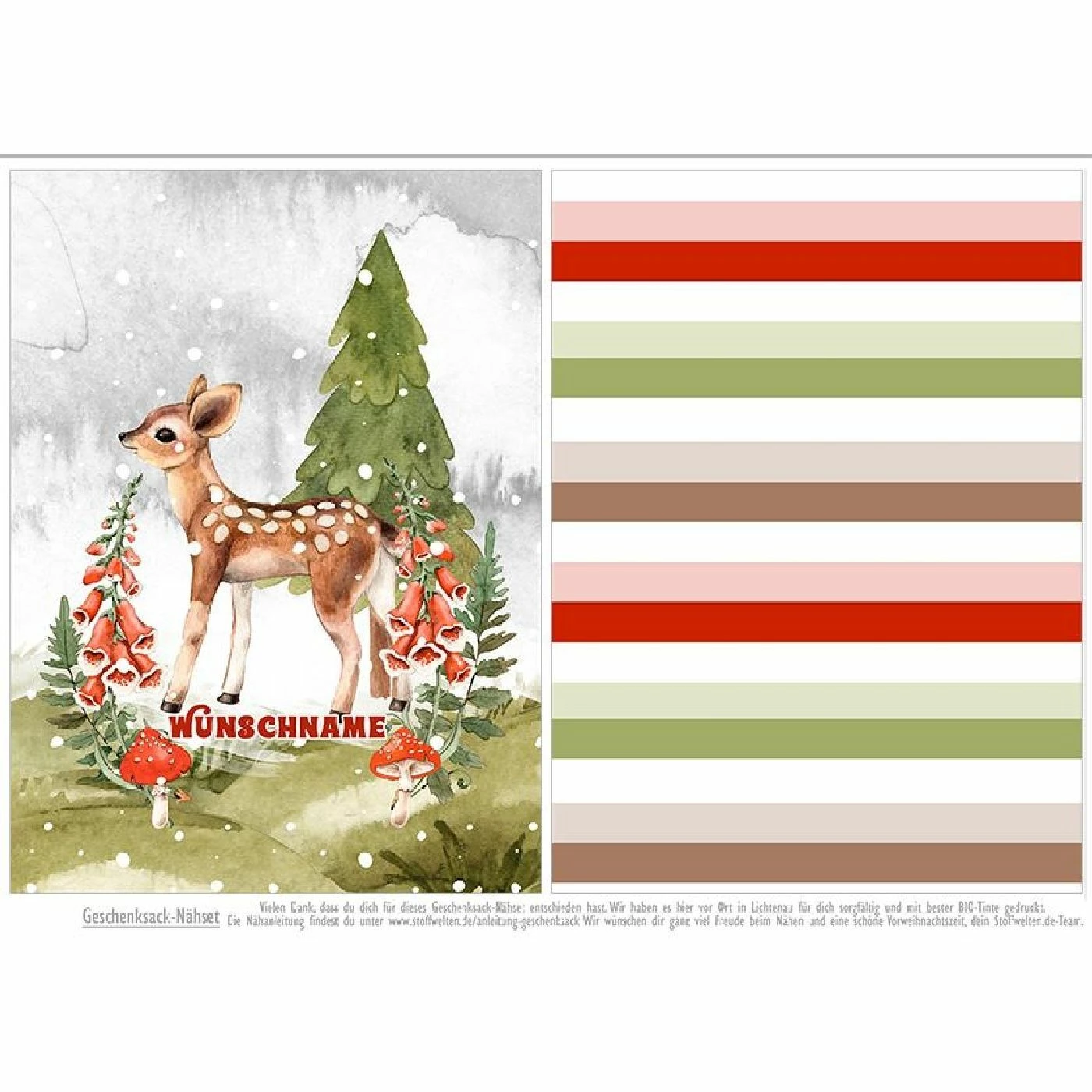Nähset XXL Riesen WUNSCHNAME Geschenke-Sack Reh, Im Wald, Canvas