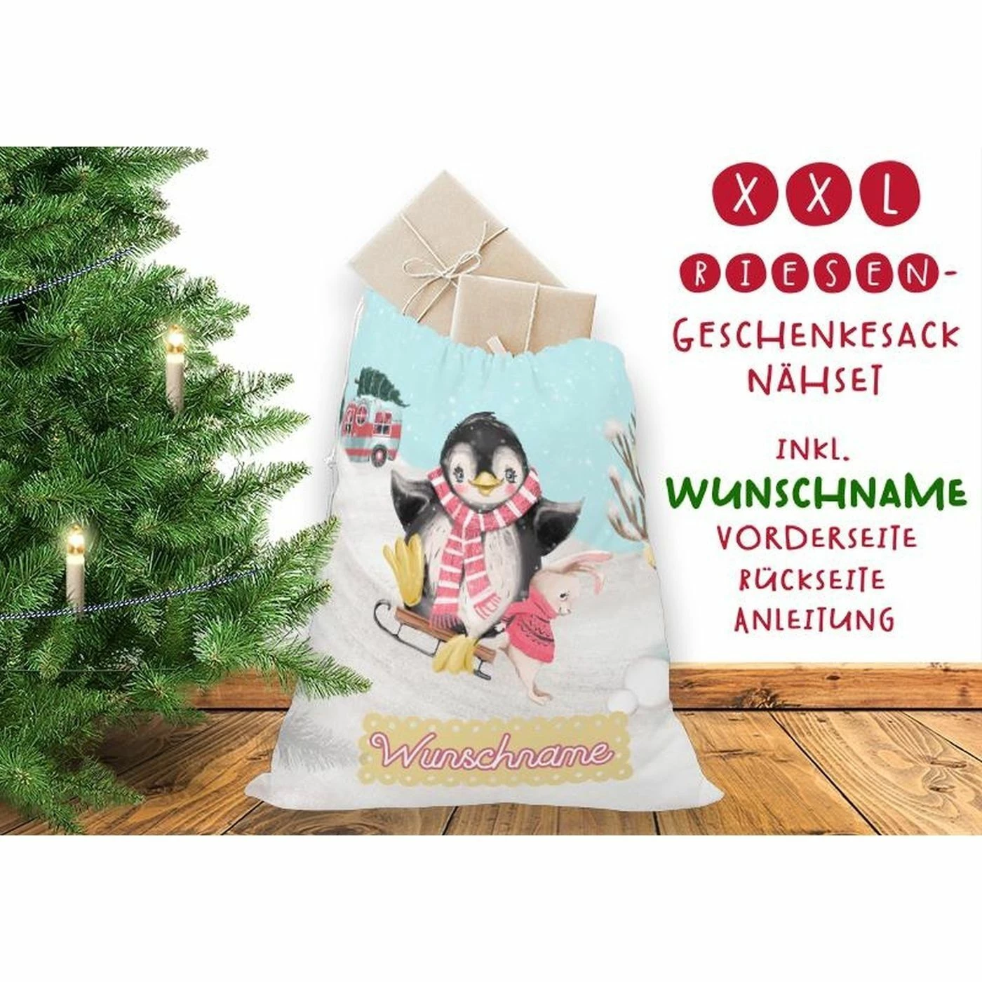 Nähset XXL Riesen WUNSCHNAME Geschenke-Sack Winterspaß Schlitten, Canvas