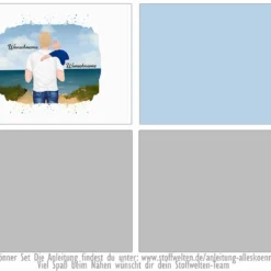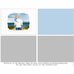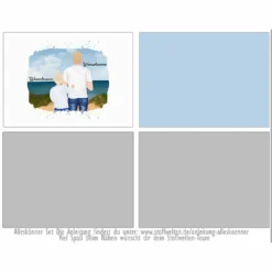 Hochw. Kissen-Panel Vater & Kind (Grundschulkind) Am Strand , Wunschnamen + Wunschfrisuren
