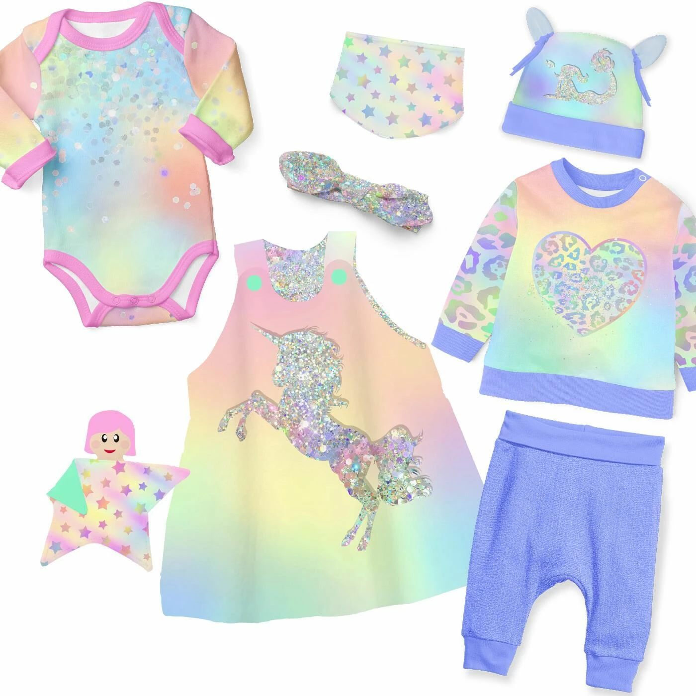 - Kleid, Pulli, Hose, Mütze, Halstuch, Schmusepuppe, Lätzchen und Body