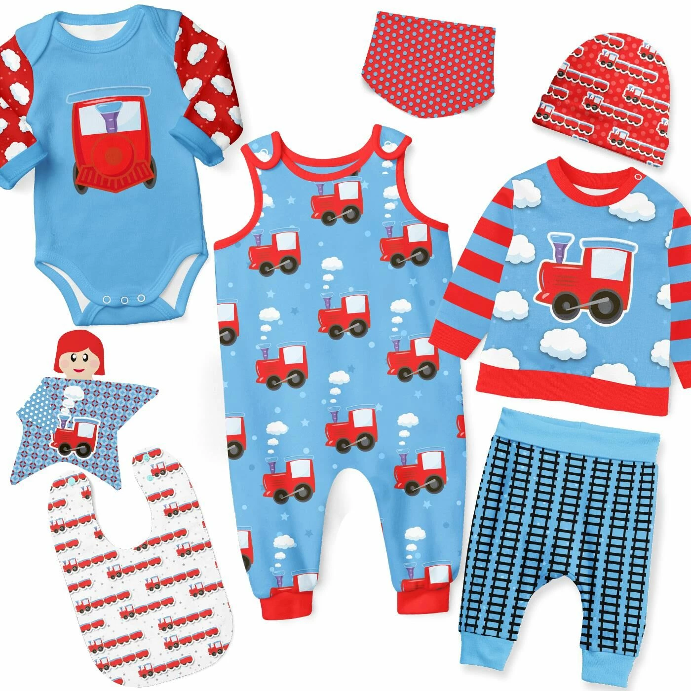 Puppenkleidung SET 8 Tlg. „Unisex“ Eisenbahn (Nähset)