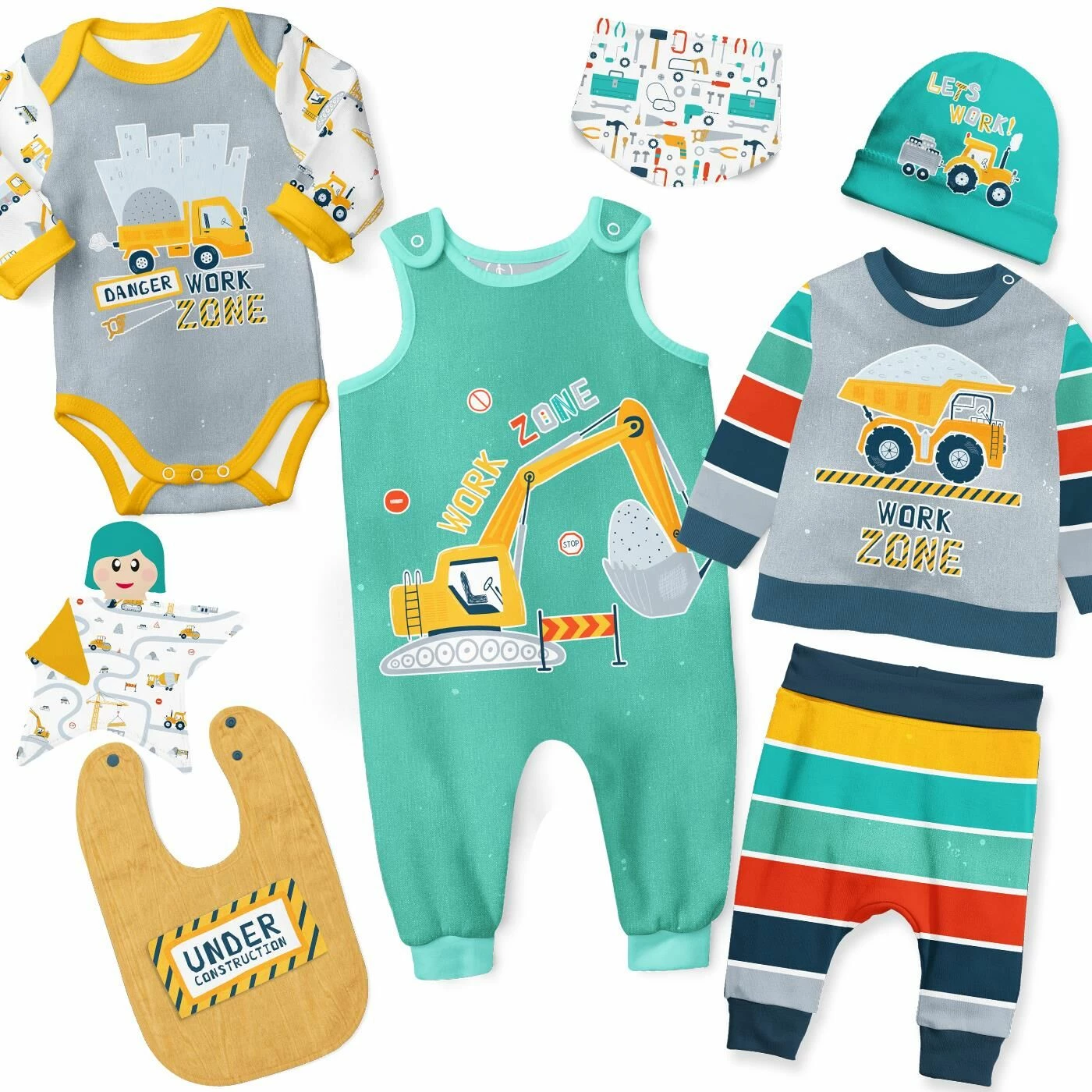 Puppenkleidung SET 8 Tlg. „Unisex“ Großbaustelle (Nähset)