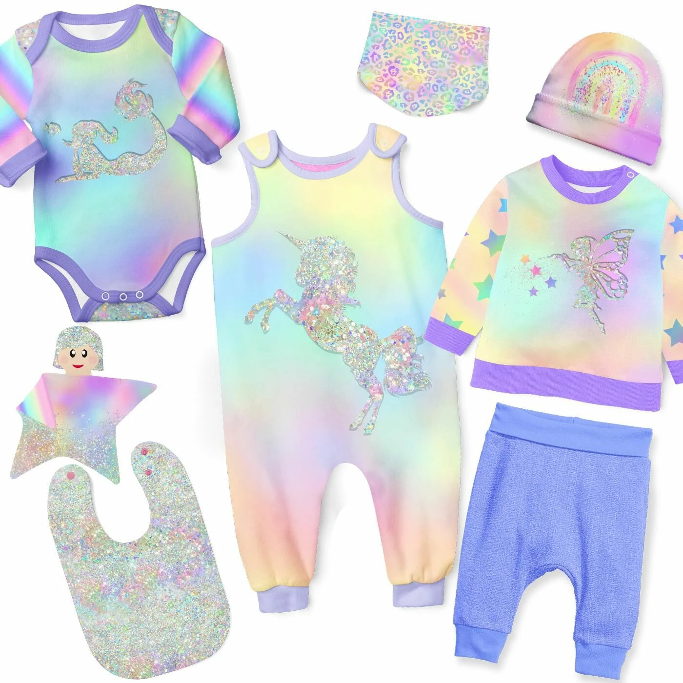 Puppenkleidung SET 8 Tlg. „Unisex“ Holo Glitter (Nähset)