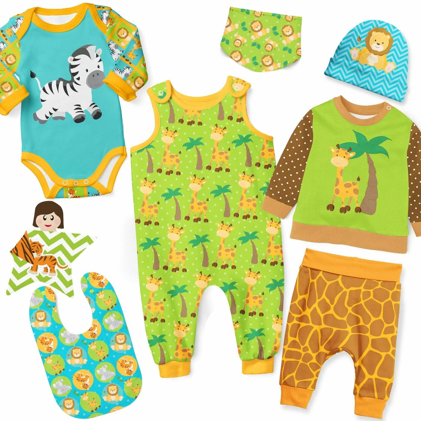 Puppenkleidung SET 8tlg. „Unisex“ Zootiere (Nähset)