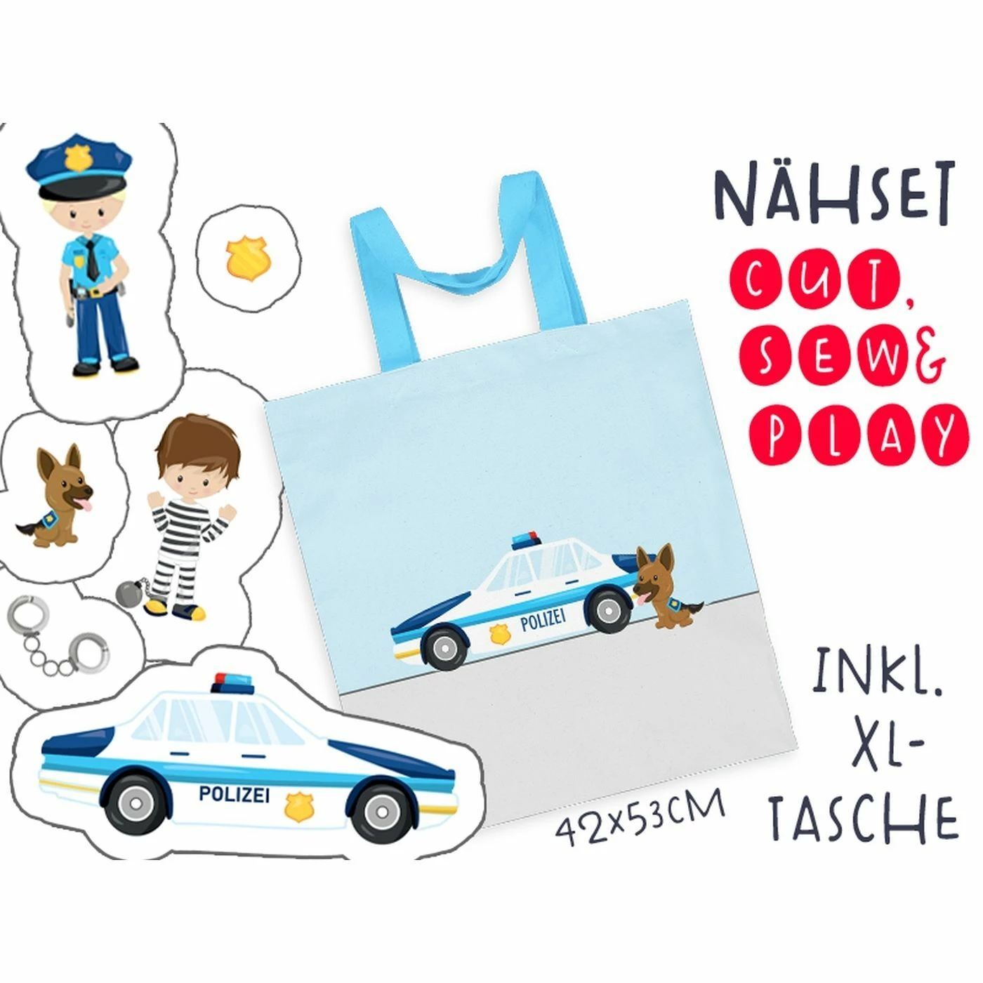Cut, sew & play – da ist der Name Programm. Dieses Set beinhaltet neben vielen, tollen Figuren, eine XL-Tasche, damit alle genähten Teile auch hinterher ordentlich verstaut werden können. Die Tasche bietet wirklich RICHTIG viel Platz, denn sie ist im genähten Zustand ca, 42cm breit und 53 cm hoch (OHNE HENKEL!!!) und damit erheblich größer als unsere KITA-Beutel. Da passt auf jeden Fall ordentlich was rein, sogar noch mehr, als Figuren im Set sind. Die Figuren werden ganz einfach ausgeschnitten, rechts auf rechts aufeinander genäht. Lass einfach eine Wendeöffnung. Anschließend wenden, ausstopfen (z.B. mit Füllwatte, Stoffresten etc.) und die Wendeöffnung schließen – schon bist du fertig. Unsere cut, sew & play- Sets sind recht groß gehalten, denn wir finden, dass sie so nicht nur als Figuren, sondern auch als kleine Kuschelkissen toll sind. So hast du mehrere Projekte in einem: Ein Nähset, was du einfach mit deinem Kind nähen kannst, einen tollen Spielwert der Figuren (die nicht zu klein für Kinderhände und dadurch gut zu greifen sind) und sogar noch die Möglichkeit zu kuscheln. Super, oder? Die Nähanleitung für den Beutel findest du hier: https://www.stoffwelten.de/naehanleitungen. Wir wünschen dir ganz viel Freude bei deinem (Mana-Kind-)Nähprijekt