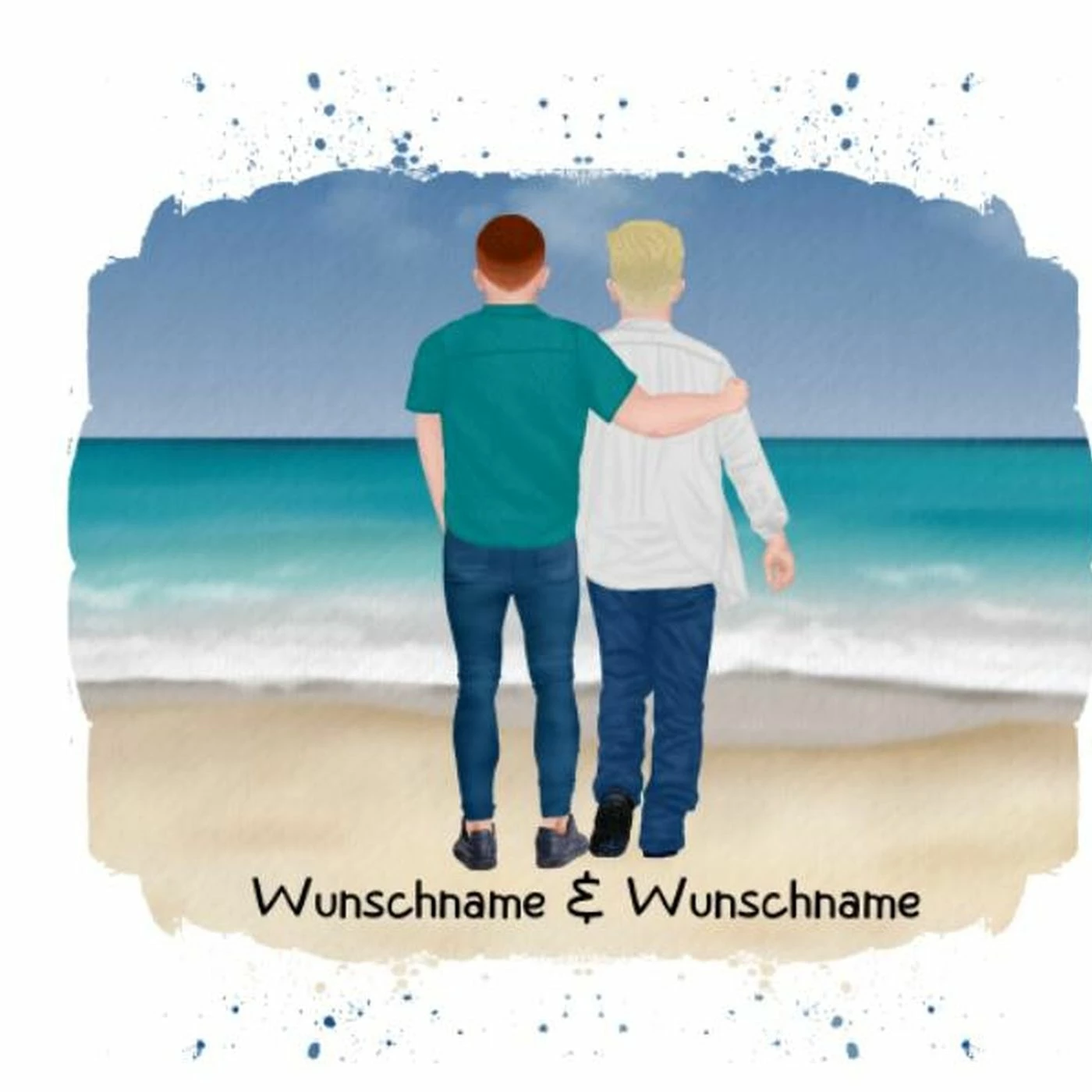 XL Panel Männer Paar Am Meer, Wunschnamen + Wunschfrisuren, Bio-Jersey
