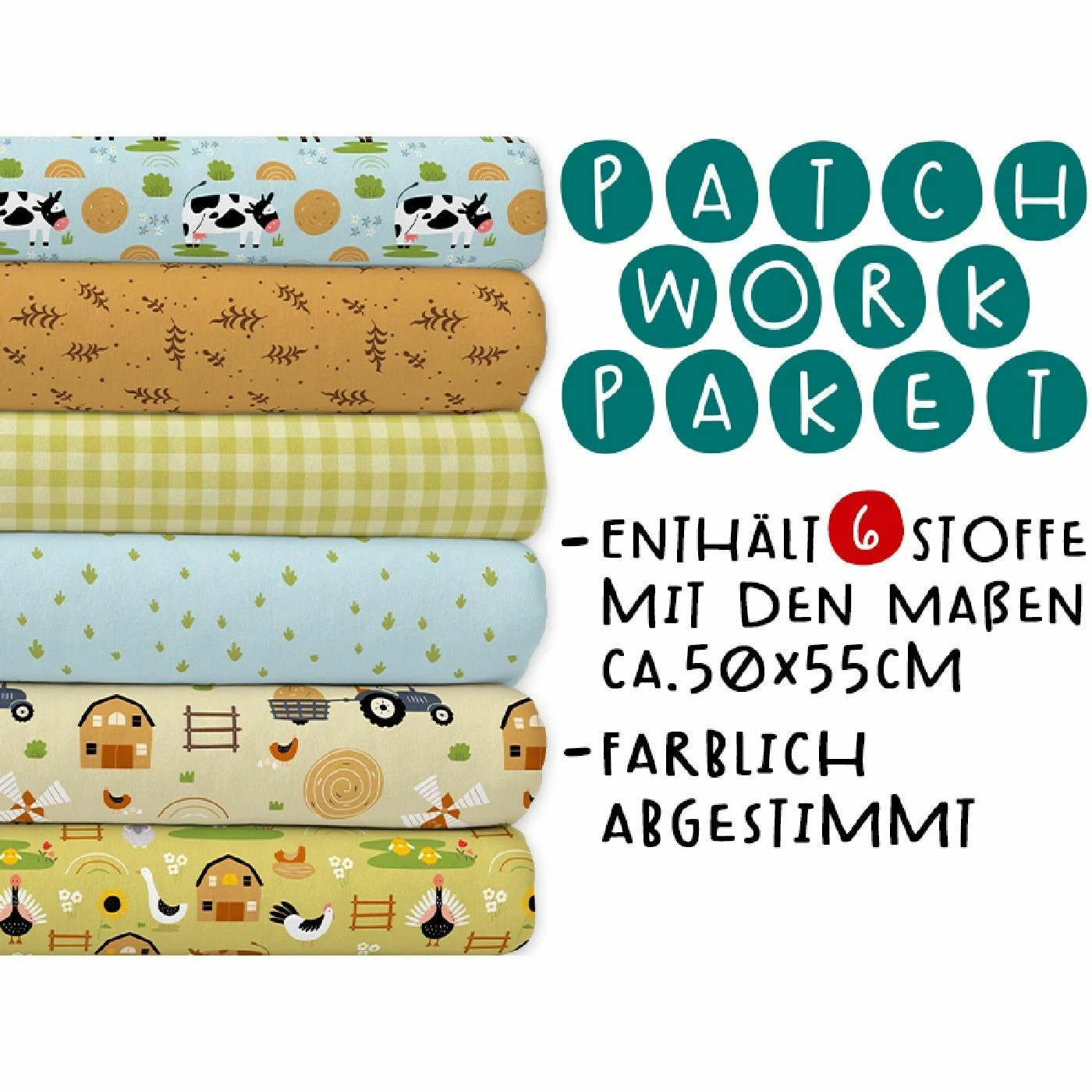 Du suchst perfekt farblich abgestimmte Muster für Patchwork, Quilt & Co? Dann ist unser Patchwork-Paket genau richtig für dich. Es beinhaltet 6 verschiedene Muster. Jedes Muster hat ein Maß von ca. 50cm Breite und 55cm Länge. Damit ist dein Paket sehr, sehr ergiebig und für viele Nähprojekte geeiget.