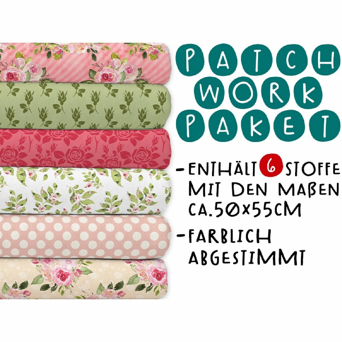 Du suchst perfekt farblich abgestimmte Muster für Patchwork, Quilt & Co? Dann ist unser Patchwork-Paket genau richtig für dich. Es beinhaltet 6 verschiedene Muster. Jedes Muster hat ein Maß von ca. 50cm Breite und 55cm Länge. Damit ist dein Paket sehr, sehr ergiebig und für viele Nähprojekte geeiget.