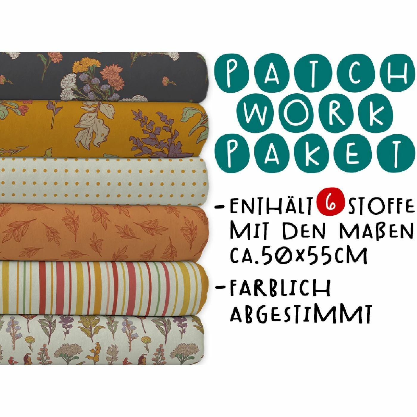 Du suchst perfekt farblich abgestimmte Muster für Patchwork, Quilt & Co? Dann ist unser Patchwork-Paket genau richtig für dich. Es beinhaltet 6 verschiedene Muster. Jedes Muster hat ein Maß von ca. 50cm Breite und 55cm Länge. Damit ist dein Paket sehr, sehr ergiebig und für viele Nähprojekte geeiget.