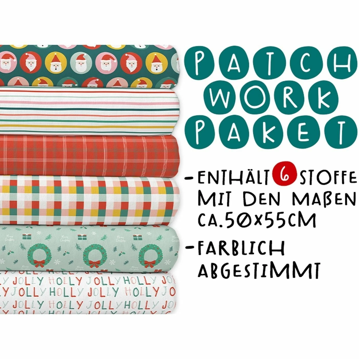 XL Patchworkpaket, 6 Designs, Nikolaus, Stoffpaket Baumwolle, Hochwertige Popeline